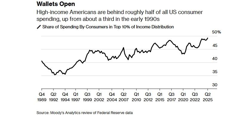 Furthermore, the labor market remains tight, and consumer spending is uneven, with the top 10% of income earners accounting for nearly 50% of spending.