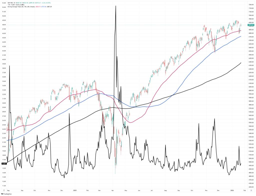 The market arrives at a turning point as January wraps up into a week that will define near‑term risk appetite. Volatility remains elevated, and the narrative has shifted decisively from political headline swings to earnings and economic fundamentals. Last week’s tariff tensions triggered sharp moves across major tech names and drove the CBOE Volatility Index back above 20 before it retraced. Investors now turn to hard data and earnings from key bellwethers on whether the growth and inflation story supporting 2026 valuations can hold up. The backdrop is a market pricing in expectations of continued strength in consumer and business demand, but also significant sensitivity to guidance and Fed policy signals.