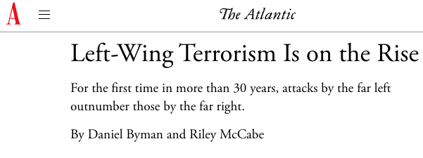 The chaos emanating from left-wing activists surprisingly and recently prompted deep state publication The Atlantic to pen a note titled, “Left-Wing Terrorism Is on the Rise.”