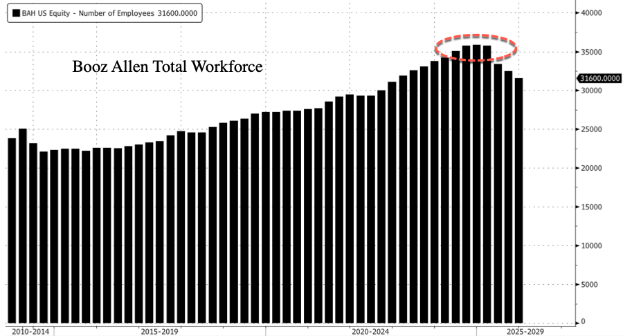 Last spring, Booz Allen said it was undergoing a major restructuring and planned to cut roughly 2,500 jobs, about 7% of its workforce, as President Trump’s DOGE efforts reduced government spending by discontinuing federal contracts.