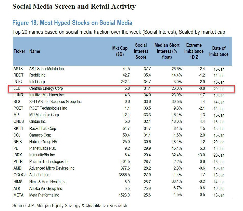 Like USAR, which we learned had received a massive $1+ billion investment from the US government, Centrus (ticker LEU) is one of the most shorted names in the market, with 25% of its float shorted…