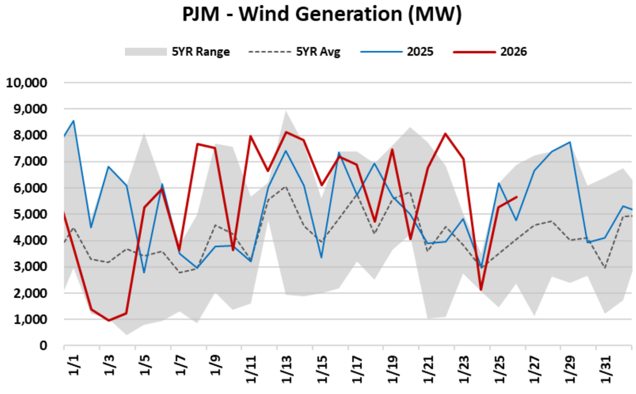 Winter Storm Fern’s Arctic blast from January 21-26 provided clear data on generation dispatch patterns during extreme cold weather events. The storm stressed multiple U.S. power grids, such as PJM and ERCOT and demonstrated the operational characteristics of different generation types under peak winter demand conditions.