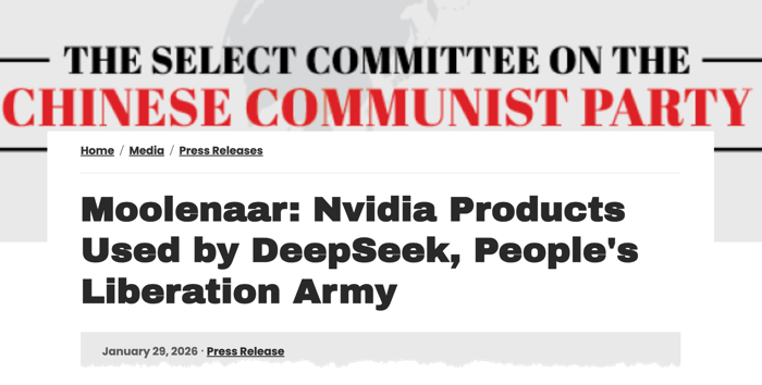 Moolenaar explained in the letter that Nvidia’s engineers helped DeepSeek dramatically improve training efficiency from export-controlled H800 chips, and proposed distributing DeepSeek as an Nvidia enterprise product, undermining the intent of export controls.