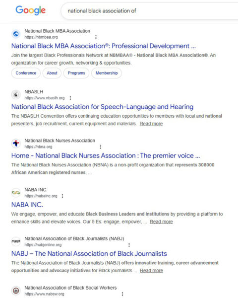 Just Google “national black association of,” and see how many results you get.