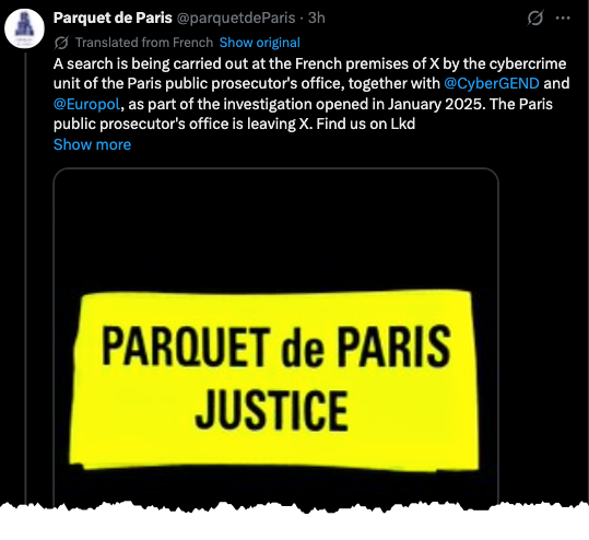 “A search is being carried out at the French premises of X by the cybercrime unit of the Paris public prosecutor’s office, together with @CyberGEND and @Europol , as part of the investigation opened in January 2025,” the Paris prosecutors’ office wrote on X early Tuesday.
