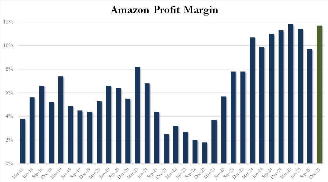 As a result of the drop in AWS profits, Amazon’s consolidated operating margin posted a notable jump and in Q4 increased 9.7% to 11.7%, just shy of an all time high.