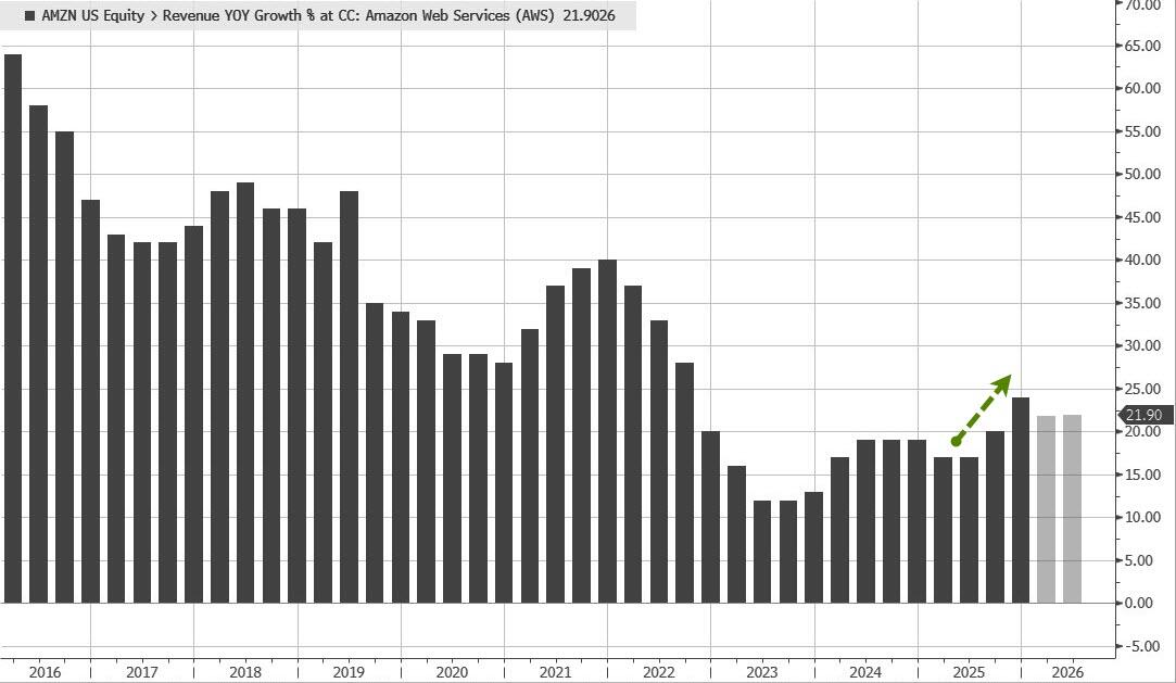 In our AMZN earnings preview, we said that the price reaction from META and GOOGL “leaves Amazon in a precarious place as it prepares to report earnings after the close today: does it project some berserk number or does it risk being conservative? After all, the only thing that will matter is the capex forecast (the earnings will likely be good enough).”