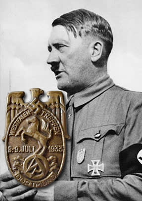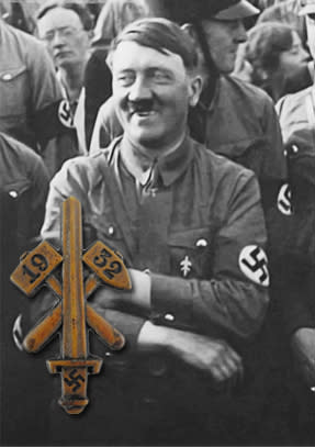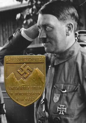 Tinnies are small badges, often made of cheap metal, like tin (hence their name), which were widely produced for almost each event that took place during the Third Reich, and were sold to the public as a souvenir for their participation of the event. There are thousands of tinnies, and they are now a major part of Third Reich collectibles.