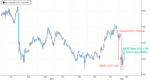 Shares of HIMS crashed in New York premarket trading, down about 20%, after the telehealth firm pulled its Wegovy copycat GLP-1 pill on Saturday. Novo hit the HIMS with a lawsuit earlier this morning.
