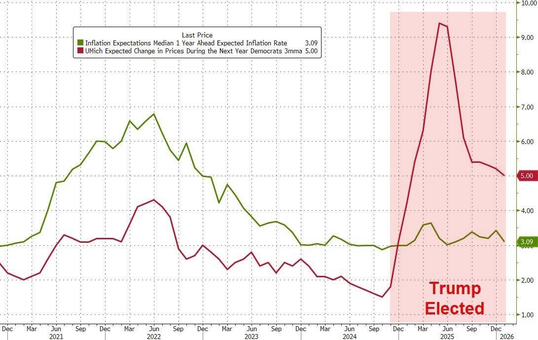 Finally, some food for thought… Going back to where we started above, why was it that for the entire term of President Biden, Democrats surveyed by UMich saw future inflation expectations dramatically below that of the NYFed’s survey respondents…