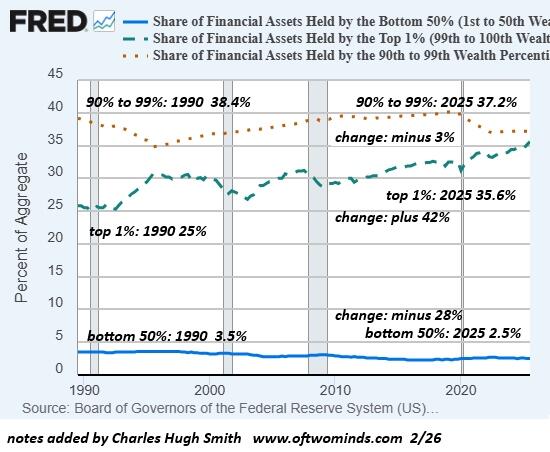 The only way to reverse the debasement death spiral is to end the economy’s dependence on ever-rising debt to fund consumption and an ever-expanding money supply to inflate the asset bubbles that fuel both soaring wealth inequality and the outsized spending of the top 10%–spending that generates a lopsided illusion of “growth.”