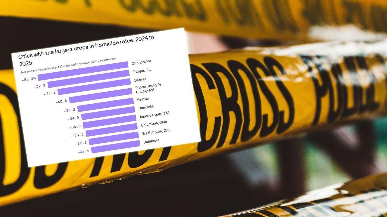 Stand out cities include Orlando and Tampa, with more than a 50% decline in homicides. Denver, Seattle, Honolulu, and Albuquerque, N.M., also posted impressive homicide drops.