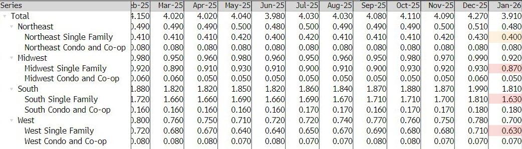 While some suggested this could be impacted by the Winter Storms, this is based on contracts signed in November/December… and the biggest decline was in The West (which had zero weather impact)