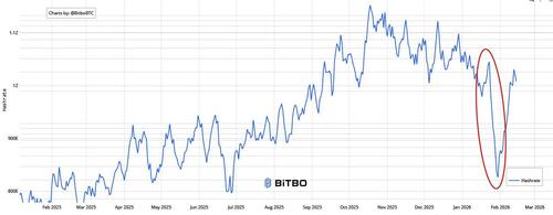 The hashrate – the amount of computing power operating on the Bitcoin blockchain at any given time – dropped by about a third in recent days, explained largely by the hundreds of etahash (a measure of Bitcoin mining output) of Bitcoin mining capacity participating in such demand-response programs.