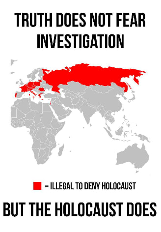 Questioning the evidence is now legally conflated with denial and antisemitism. More ominous, anyone who does will be socially, politically and economically ostracized and persecuted. Their reputations, careers, businesses and social standing will be ruined in every western nation, even those without formal denial laws. ‘Denial’ is a recently invented psychological term to convict a person while circumventing the investigation of all evidence that contradicts any mainstream narrative based on forensic data. It has now expanded to Climate Change denial, Covid denial, Vaccine denial, Statins denial, and more.
