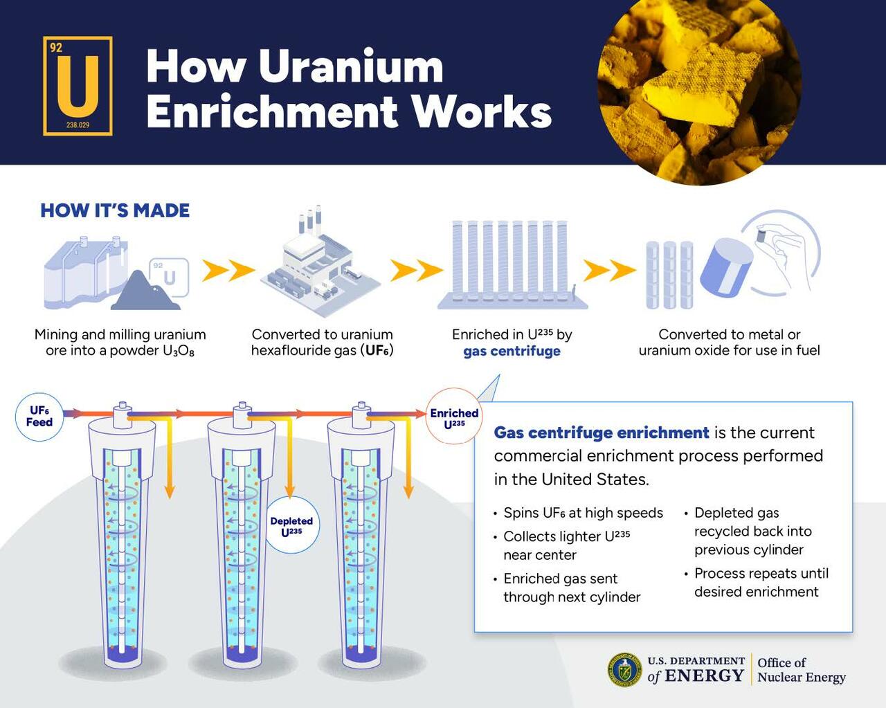 Laser enrichment technology is considered the third generation of uranium enrichment methods. The first was gaseous diffusion, which was only used back in the day of the Manhattan Project. Due to its extreme power consumption, newer technology was developed for the second generation – gas centrifuge. Centrifuges are still in use across the world today. For third generation technology, laser enrichment is currently under development by multiple companies including LIST, ASPI, Hexium, and GLE.
