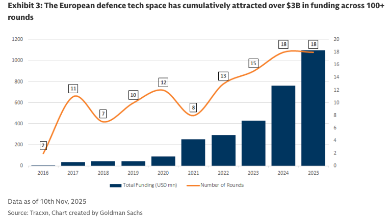 Goldman analysts, led by Sam Burgess, told clients on Tuesday that European defense is seeing a “rise of the startups,” which could reshape an industry long dominated by major defense contractors.