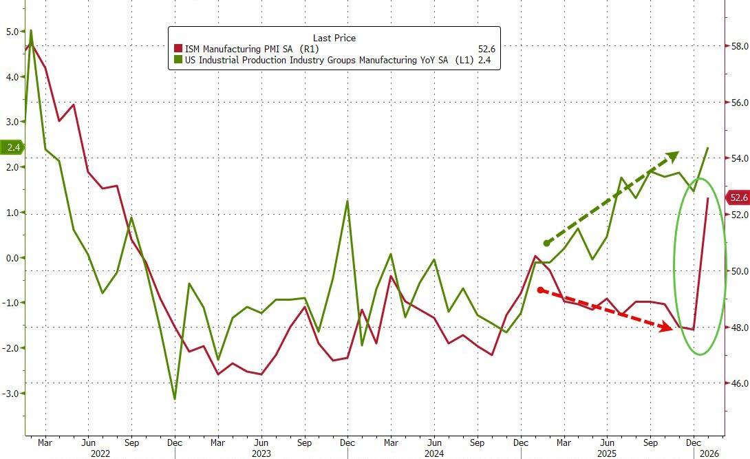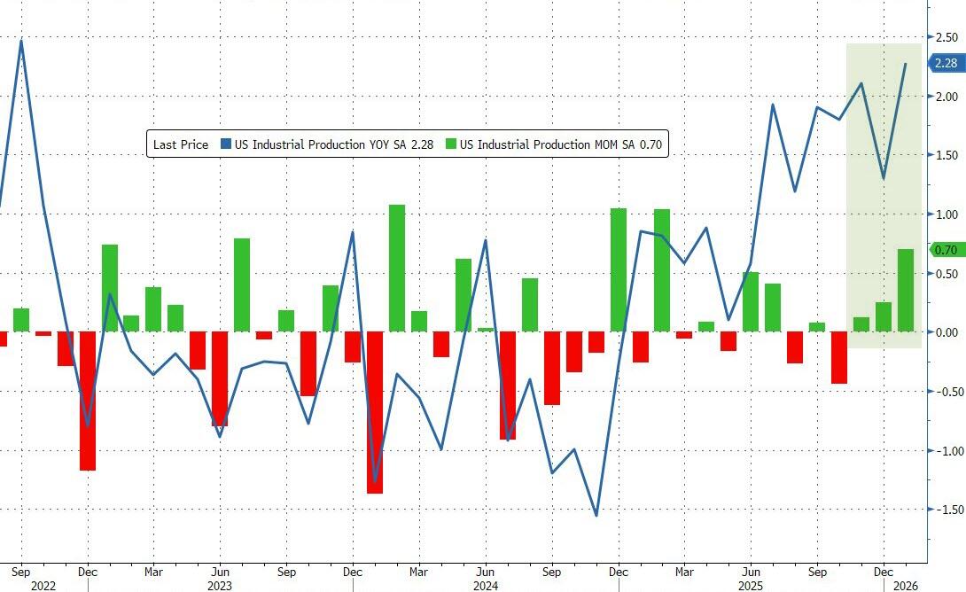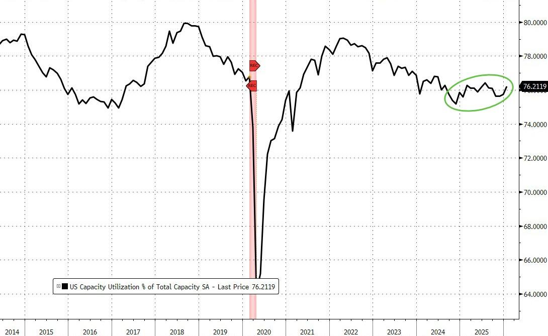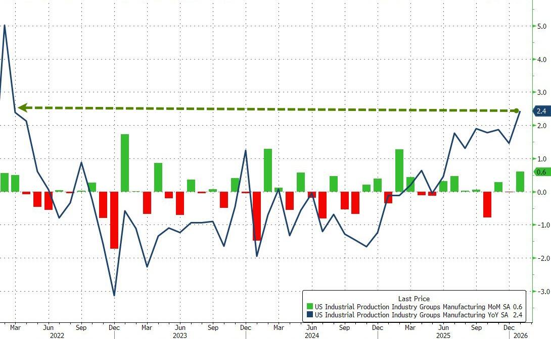 Under the hood, US Manufacturing output rose 0.6% MoM (better than the +0.4% MoM expected and best monthly gain since Feb 2025)…