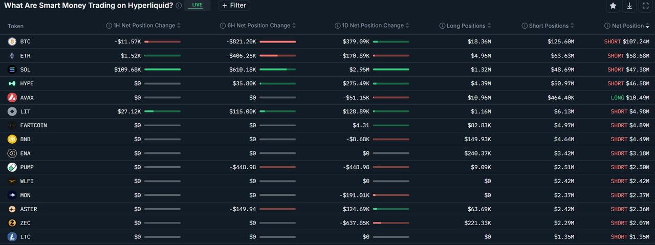 Smart money trader positions through the Hyperliquid exchange, top tokens. Source: Nansen