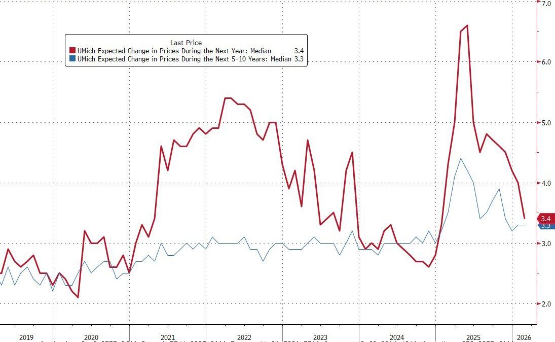 Year-ahead inflation expectations fell from 4.0% last month to 3.4% this month, the lowest reading since January 2025.