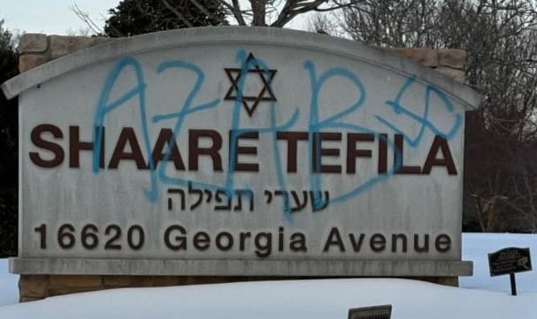 (1) https://wjla.com/news/local/montgomery-county-olney-shaare-tefila-synagogue-vandalism-antisemitism-police-investigation-graffiti-hate-crime-community-safety-swastika-surveillance-crime-maryland-jewish-faith