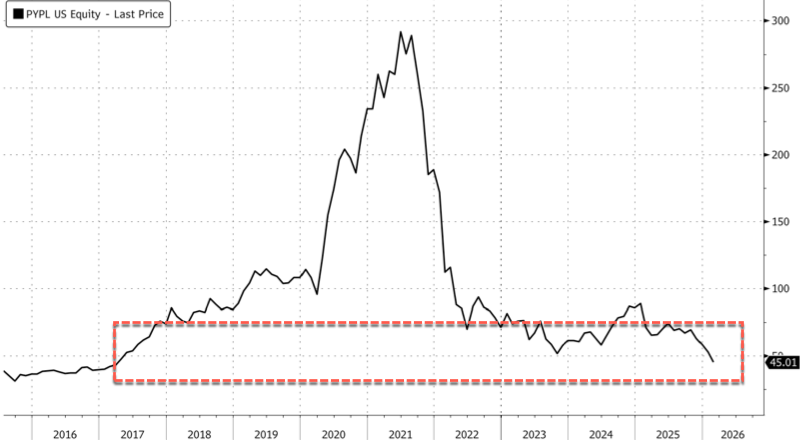 Before the news hit, PayPal shares in New York were at 2017 lows (with a market capitalization of around $37 billion) and down more than 85% from the 2021 high of $291.48. Year to date, shares are down 30%.