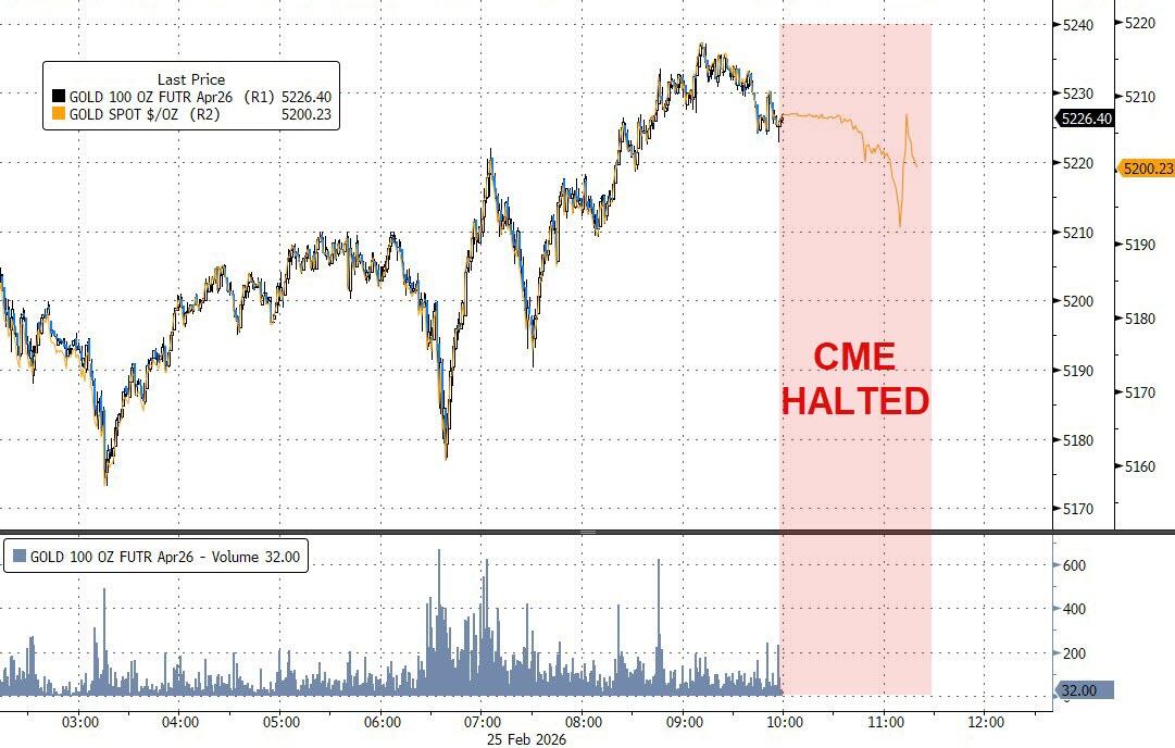 At around 1300ET, the Chicago Mercantile Exchange (CME) halted trading of all metals and NatGas contracts (futures and options) due to ‘technical issues’.