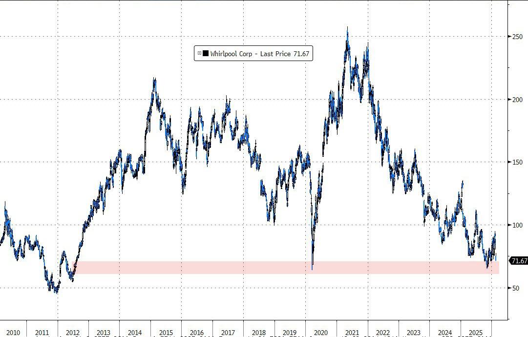 The share sale triggered a sharp market reaction. Whirlpool stock fell 14% Tuesday after announcing plans to raise about $454.9 million through a common stock offering and $508.1 million via depositary shares.