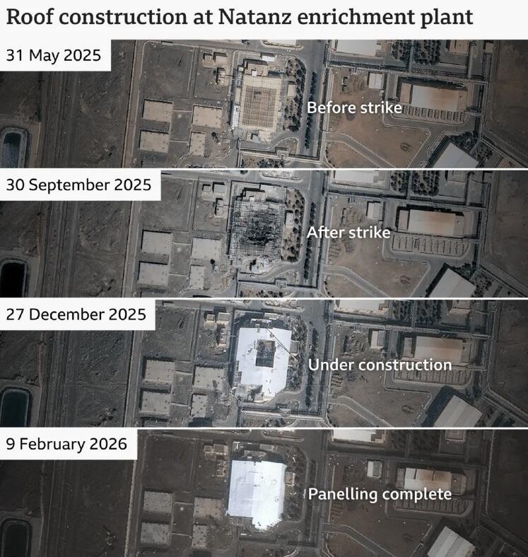 With U.S.-Iran talks ongoing and satellite imagery showing repair and hardening efforts, here is a site-by-site status update on the major facilities.