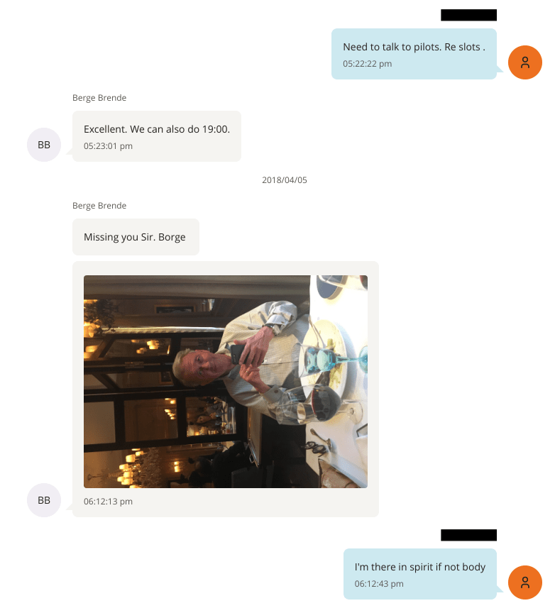 In April 2018, Brende wrote, “Missing you, Sir. Borge.”