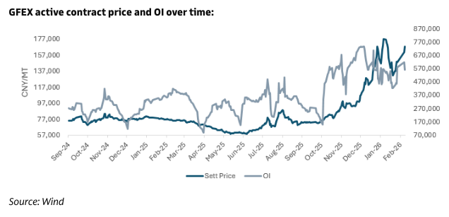 Post Chinese New Year holiday, GFEX prices were up 10% (close on close), evidence of supported prices before this headline in an already fundamentally tight market. On the Wuxi exchange (a private onshore exchange that trades around the clock), lithium carbonate prices have rallied 14% today post-headline, from roughly 160k CNY/MT to 185k CNY/MT. We expect GFEX prices (onshore lithium carbonate exchange) to move higher on this tomorrow.