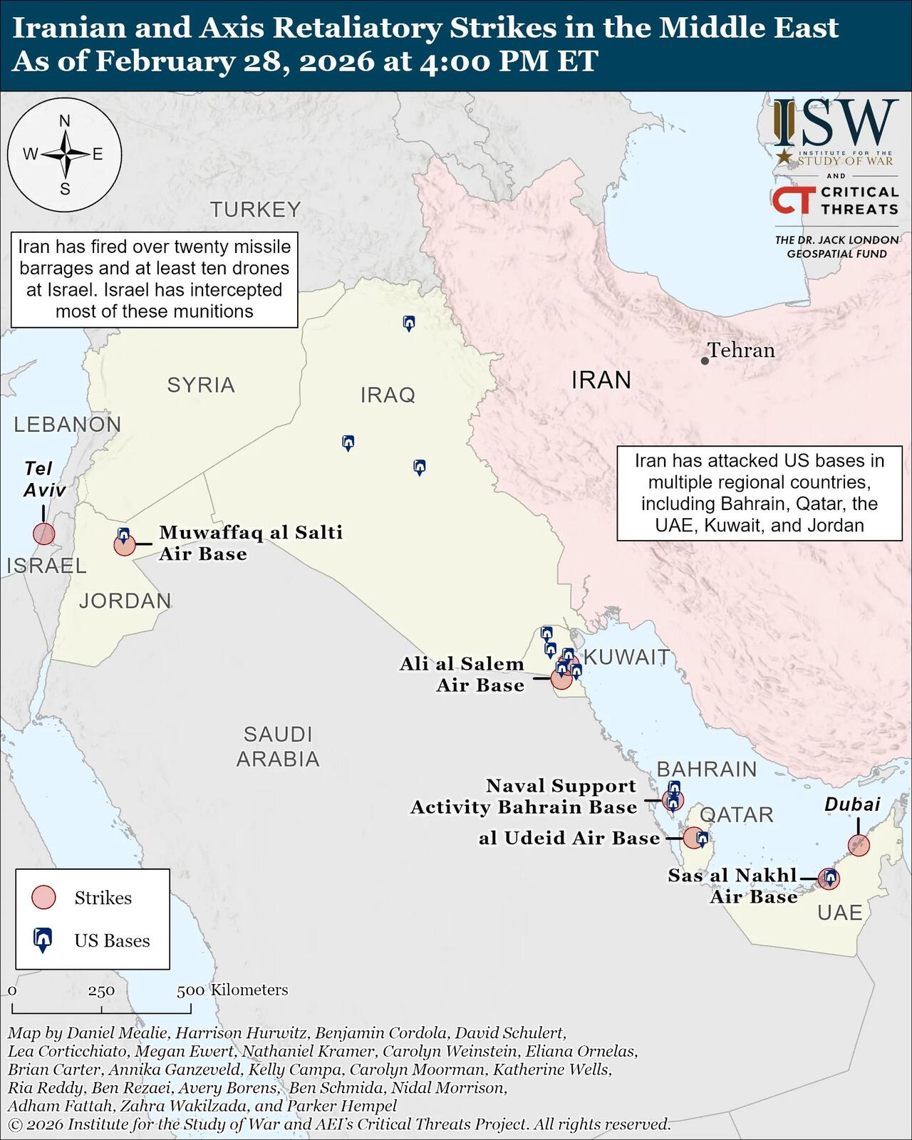 Beyond the UAE, Bahrain, Kuwait, Qatar, Jordan, and Israel have been subjected to Iranian retaliatory attacks – this is mostly because US military installations are in these countries.