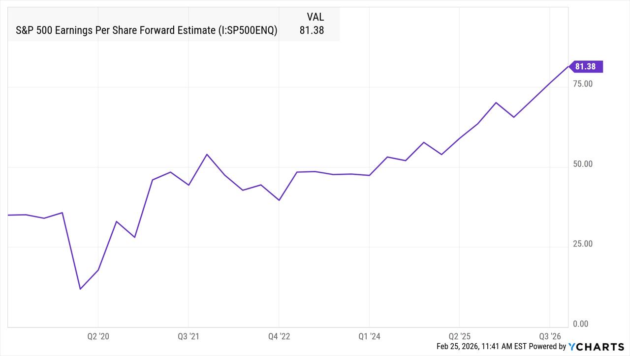 The key distinction, then, is between rotation that signals deterioration and rotation that signals broadening. The former typically occurs alongside falling earnings estimates and rising unemployment claims. The latter occurs when the economy is resilient enough to support a wider set of winners. On this score, the fundamental backdrop remains constructive. Aggregate S&P 500 earnings estimates for the forward twelve months have continued to grind higher, not lower, which is a crucial differentiator from the pre-recession environments of 2000 and 2007, when estimates were rolling over well before the index peaked.