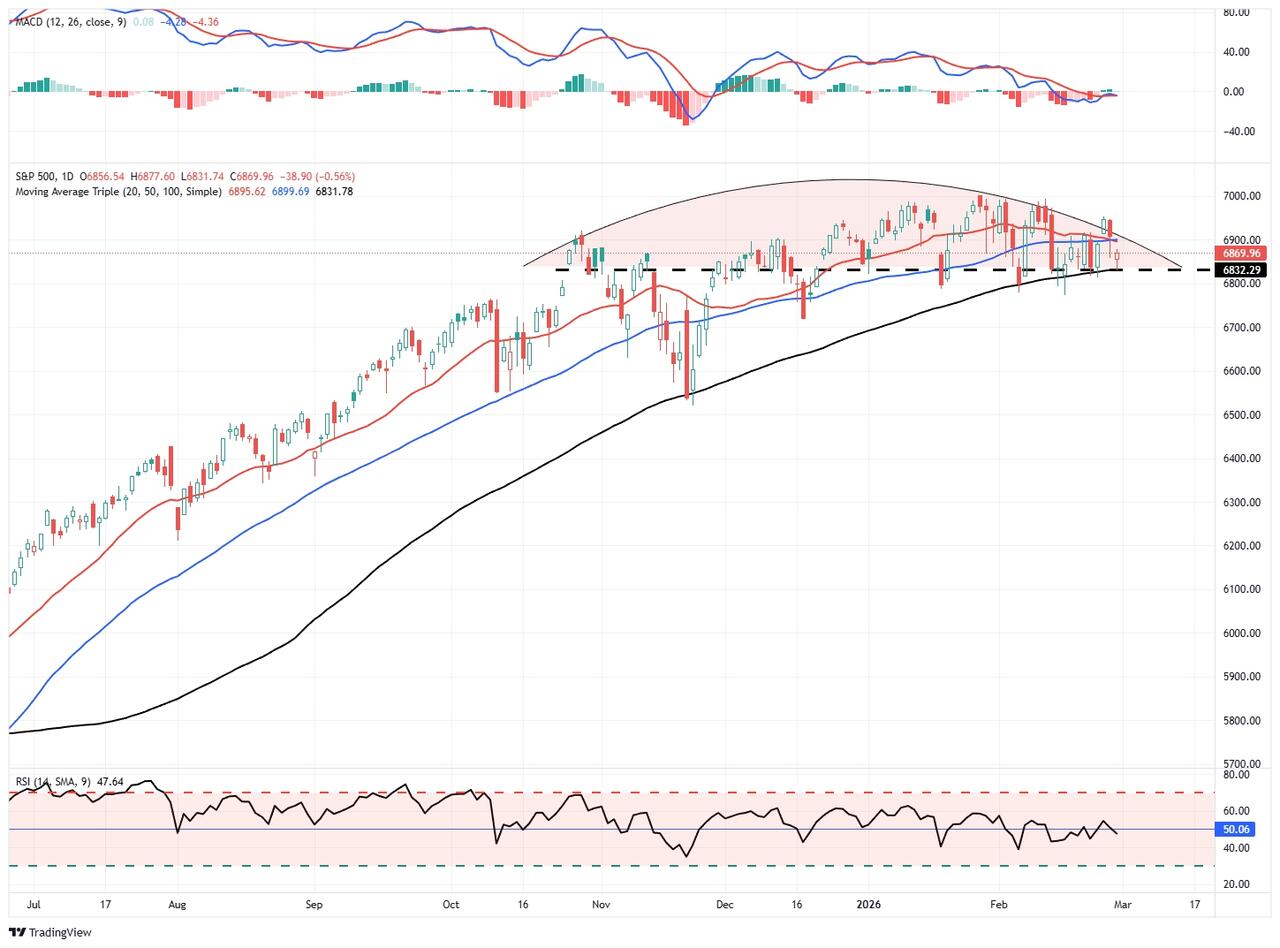 The bull trend is intact, but the “easy money” phase appears mature. The intermediate-to-long-term structure remains constructive. The 200-DMA is rising, breadth is near record levels, and the rotation trade is broadening participation. However, short-term momentum has deteriorated notably. The index is below both its 20- and 50-DMAs, the MACD has crossed bearishly, and the RSI is declining. Layer in the midterm election year seasonal headwinds, hotter-than-expected inflation, and Iran-related geopolitical risk, and the path of least resistance in early March tilts toward further consolidation or a modest pullback before the seasonal tailwinds attempt to reassert themselves. I suspect we will get a better entry point for a rally as we move into March. However, use that opportunity to rebalance oversized winners, define risk levels, and avoid chasing strength. Don’t fight the trend, but protect gains if volatility inevitably returns.