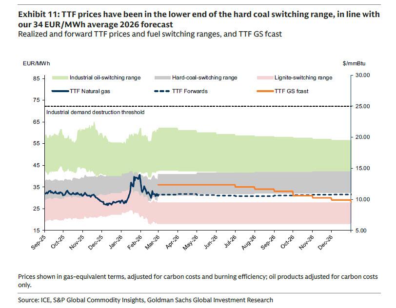 The good news, if only for the US, is that as Goldman notes, there is “limited upside risk to US natural gas prices.”