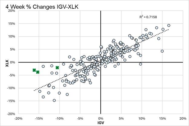 The statistical evidence of overshoot is significant. As Michael Lebowitz noted last week, the price ratio between IGV and XLK has diverged by nearly four standard deviations from historical norms over the past 100 days.