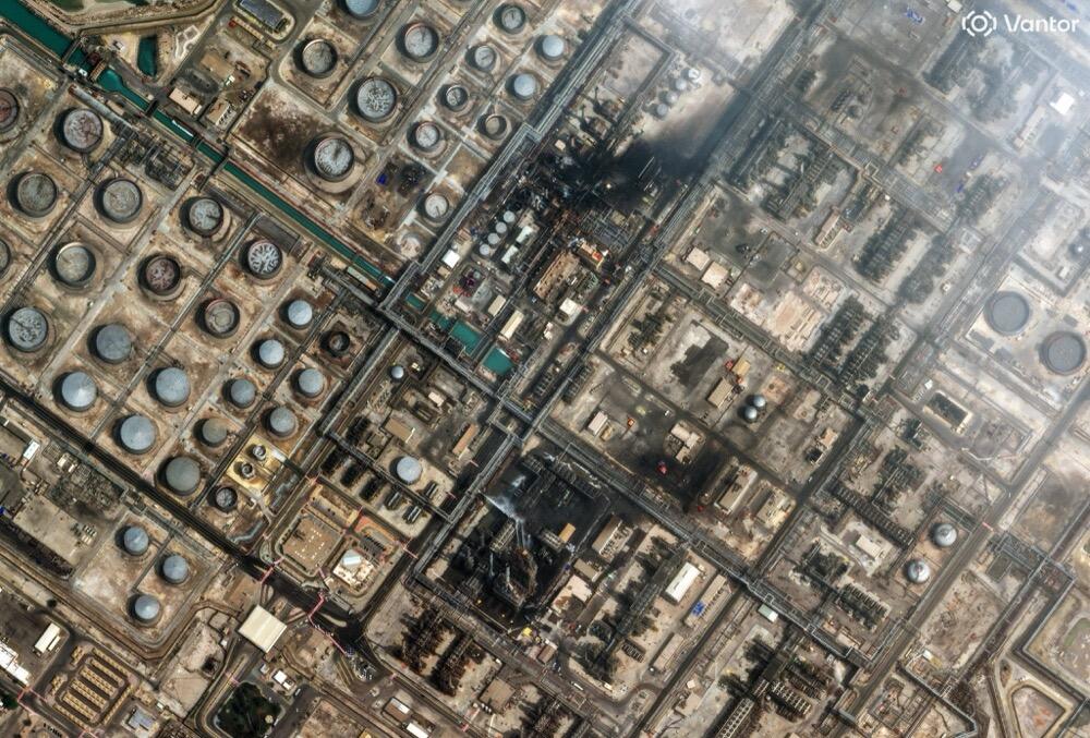 Vantor’s satellite imagery shows visible damage across multiple refinery structures, though the full extent of the disruption and physical destruction remains unclear.