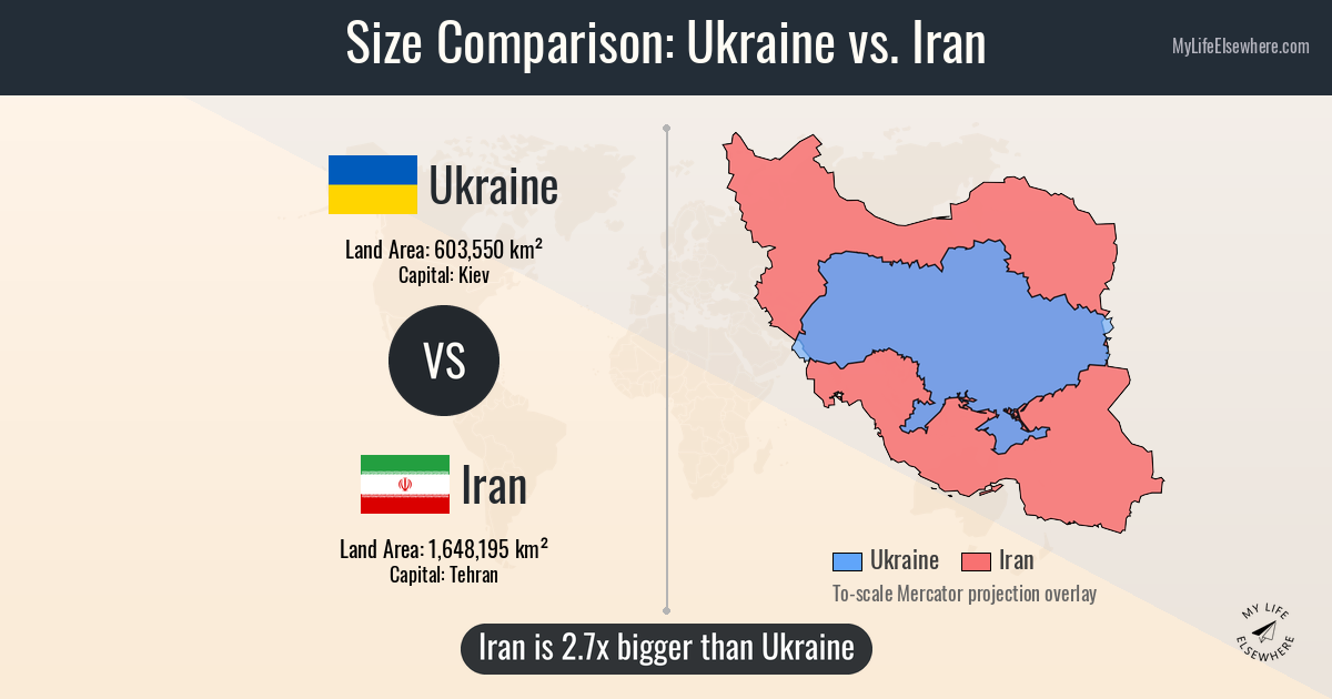 Iran: 1.648 million km² ≈ 636,300 mi² (about 16.7% of USA)