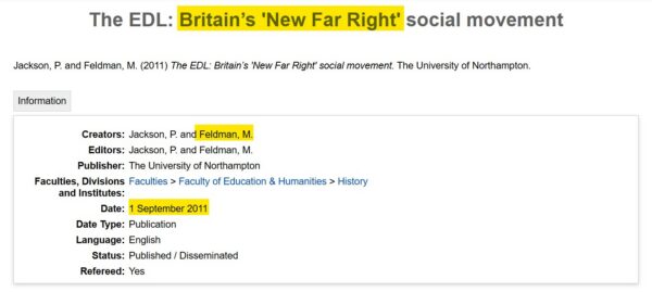 Jurors were helped along by the prosecution’s expert witness, Professor Matthew Feldman, who has been writing about “Britain’s ‘New Far Right’ “ since at least 2011.