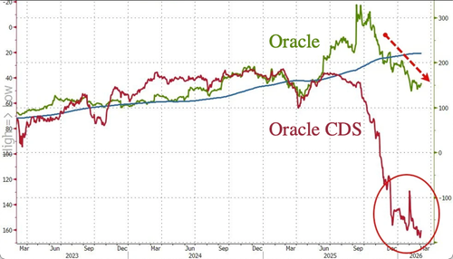 Separately, Oracle previously disclosed its largest-ever restructuring plan, up to $1.6 billion in the fiscal year ending May (including severance). That disclosure helped push ORCL CDS wider, and the spread has since blown out to its widest level since the 2008 financial crisis.