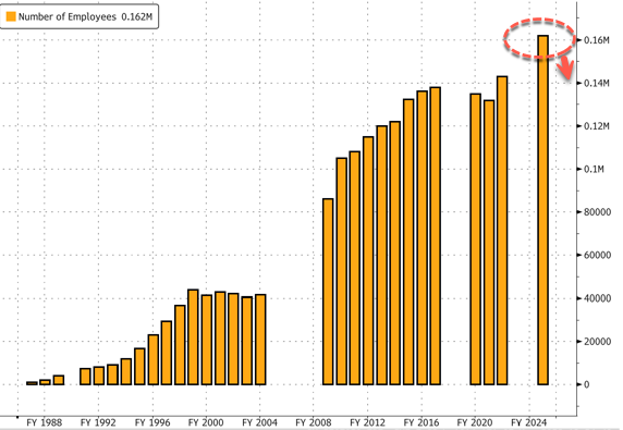 The latest Bloomberg data show the company has 162,000 employees globally as of the end of May 2025. There is no definitive number on how many workers will be laid off in the coming weeks. The people Bloomberg cited said these plans are still active and could change.