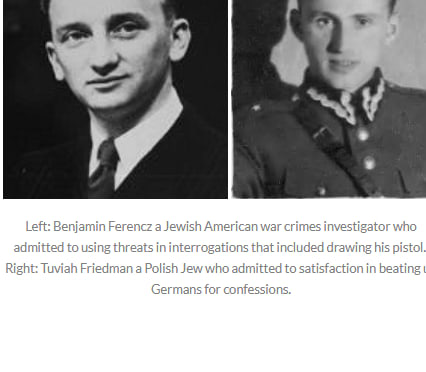 Bernard Clarke was not the only Jew who tortured Germans to obtain confessions. Tuviah Friedman, for example, was a Polish Jew who survived the German concentration camps. Friedman by his own admission beat up to 20 German prisoners a day to obtain confessions and weed out SS officers. Friedman stated that