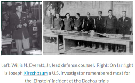 An embarrassing example of perjured witness testimony occurred at the Dachau trials. U.S. investigator Joseph Kirschbaum brought a former concentration camp inmate named Einstein into the court to testify that the defendant, Menzel, had murdered Einstein’s brother. Menzel, however, foiled this testimony—he had only to point to Einstein’s brother sitting in the court room listening to the story of his own murder. Kirschbaum thereupon turned to Einstein and exclaimed,