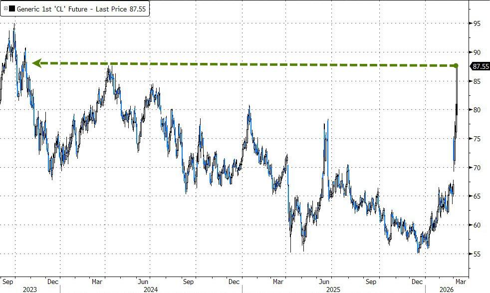 This smashed WTI up to $88 – the highest since Oct 2023…