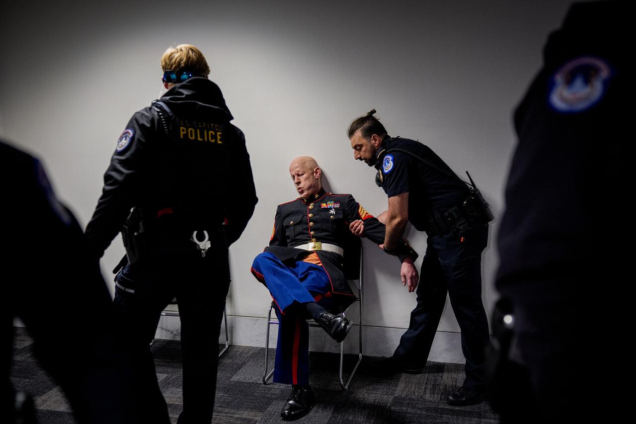 An Iraq War Marine veteran was forcibly removed from a Senate hearing after speaking out against the war with Iran. Veteran Brian McGinnis earlier posted a video on X saying he had come to Washington, D.C. to challenge lawmakers over the expanding conflict.