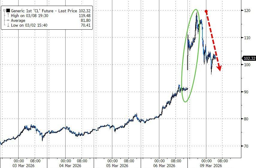 You know conditions are deteriorating very quickly when the Financial Times reports that G-7 finance ministers are set to hold an 8:30 a.m. New York time call to discuss a possible coordinated release of strategic oil reserves to combat runaway crude prices, as Brent crude hit $119/bbl overnight. Such a move to dump SPR on global markets shows just how afraid policymakers are that the oil shock could crush consumer sentiment and, in turn, hit economic growth.