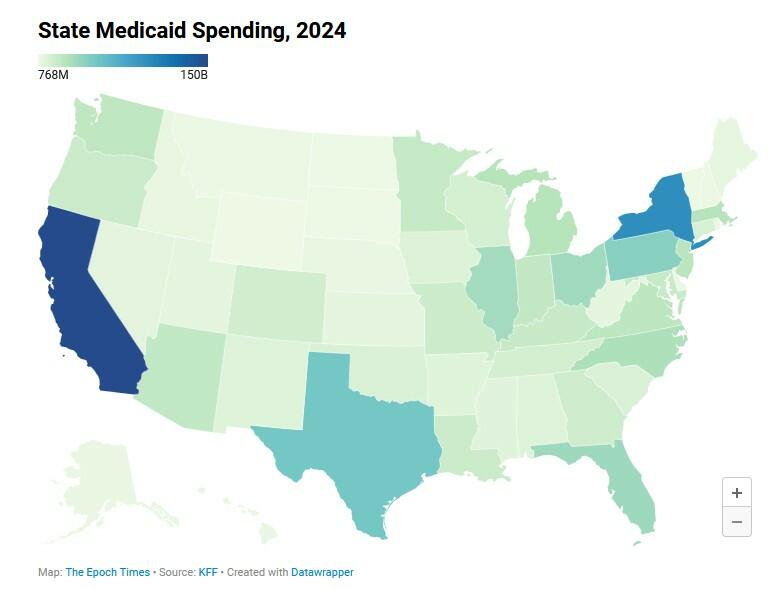 In fiscal year 2024, the state’s Medicaid spending on personal care services was $18.5 billion, nearly 70 percent more than other states’ combined spending on this item, according to The Epoch Times’ analysis of open data from the U.S. Department of Health and Human Services.