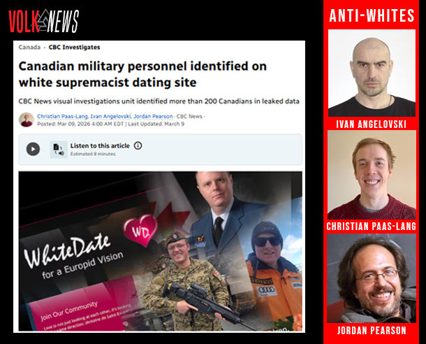 These anti-White zealots weaponize digital tools not just against individuals but entire communities fighting to preserve their culture. CBC’s “investigation” into military members is a farce—it targets legal activity (dating sites) while ignoring illegal, racially-motivated sabotage. The hypocrisy is staggering: they brand White people as villains for seeking solidarity in dating, yet protect radicals who destroy our institutions and identities under the guise of waging war on hate.