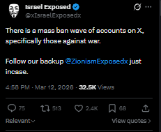 The purge has begun. Since the war started, X (formerly Twitter) under Elon Musk now a front for globalist anti-White agendas—is methodically erasing voices that dare challenge jewish/Zionist narratives or question Operation Epstein Fury (Iran war) and its false flag theater currently. Accounts are being suspended overnight; live streams die mid-broadcast; uploads vanish before they load. Even headers with non-violent, factual content get flagged as “violations.” This is not a glitch in Musk’s platform it’s a deliberate campaign to silence White dissent orchestrated by an H1B-street-shitter mafia embedded at X.
