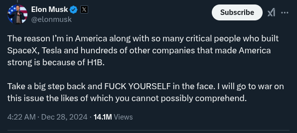 Musk has spent the last year cultivating a façade of being pro-White, plastering his social media with “Roman salute” fan art and denouncing the ADL as if he were some knight in shining armor for our race (read this article to see how absurd it was). But on Christmas Day 2024, Elon unveiled his true colors: a Kalergi-like replacement plan for White America (see here and the screenshots of him gloating about “diverse” demographics). Now, he’s using X as a honeypot to trap real White activists into speaking freely then crushing them with mass censorship.